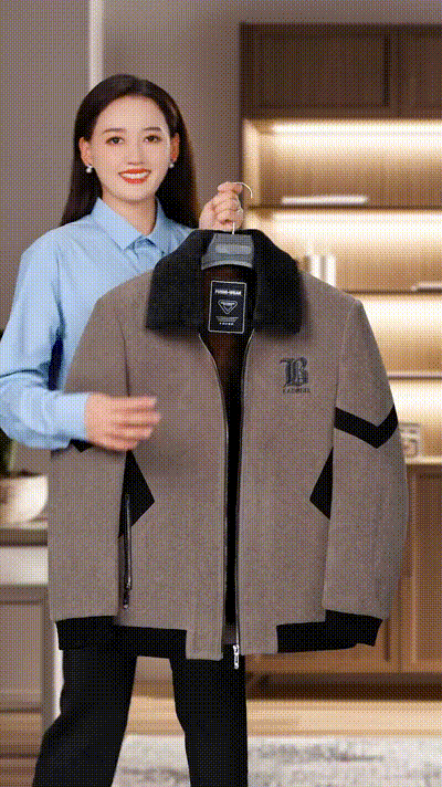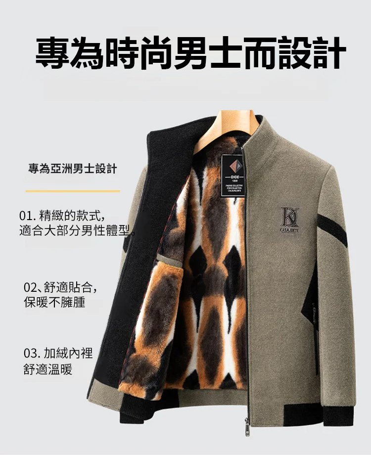 皮草內裡拼色男士毛呢外套