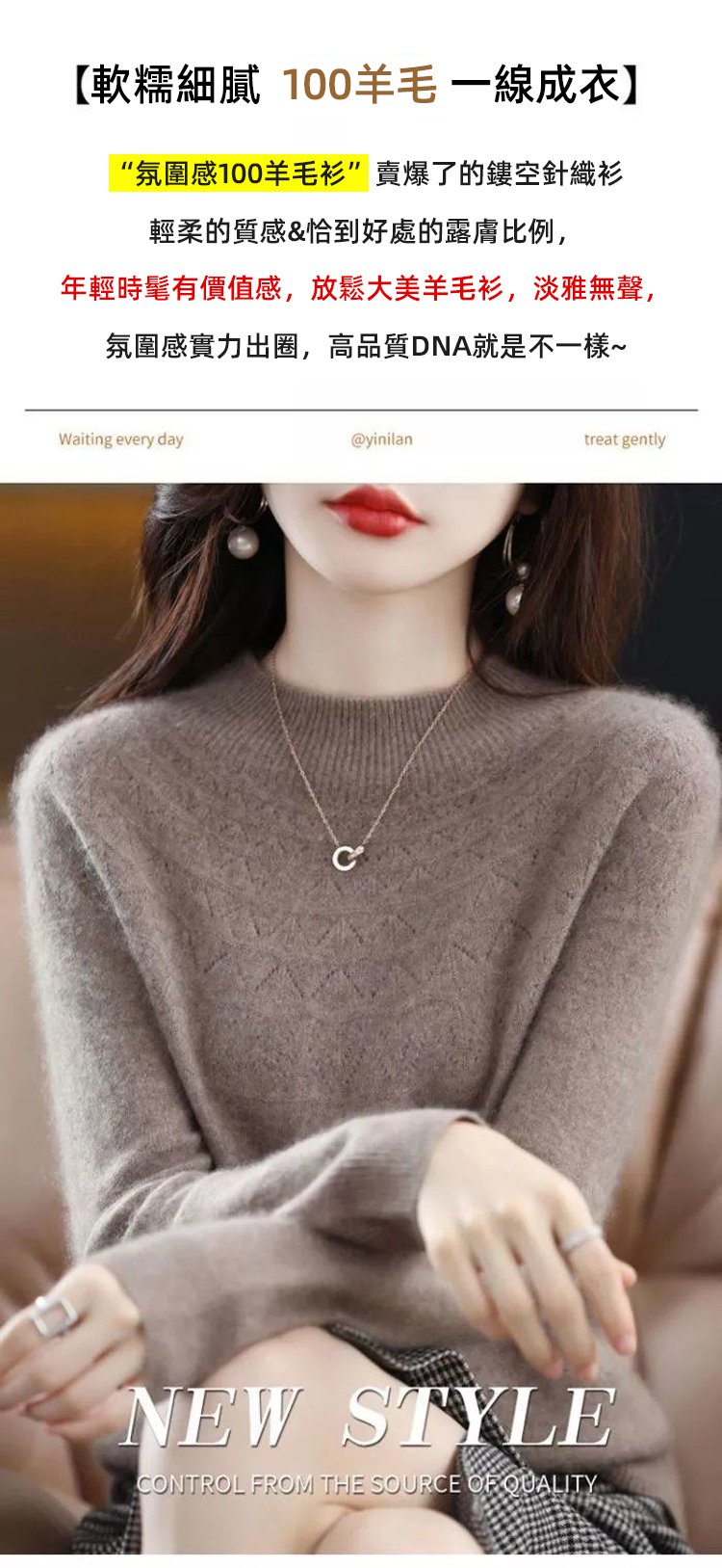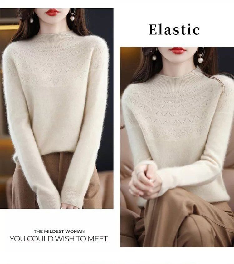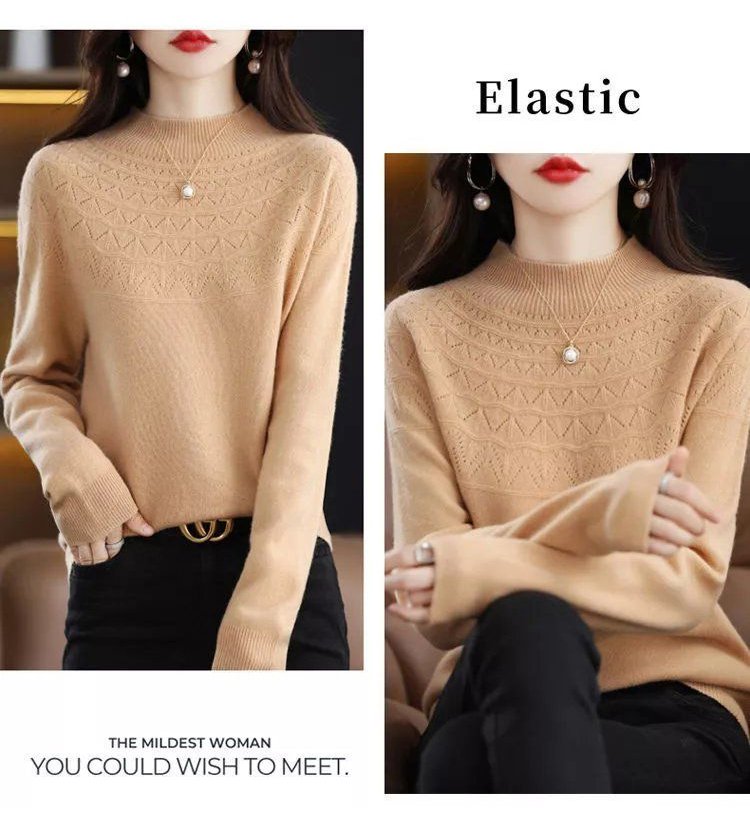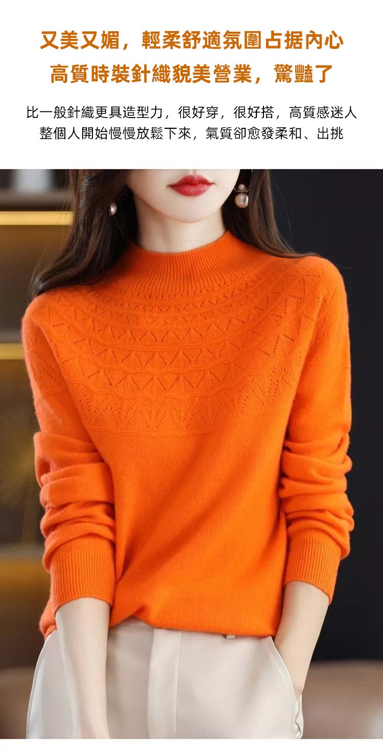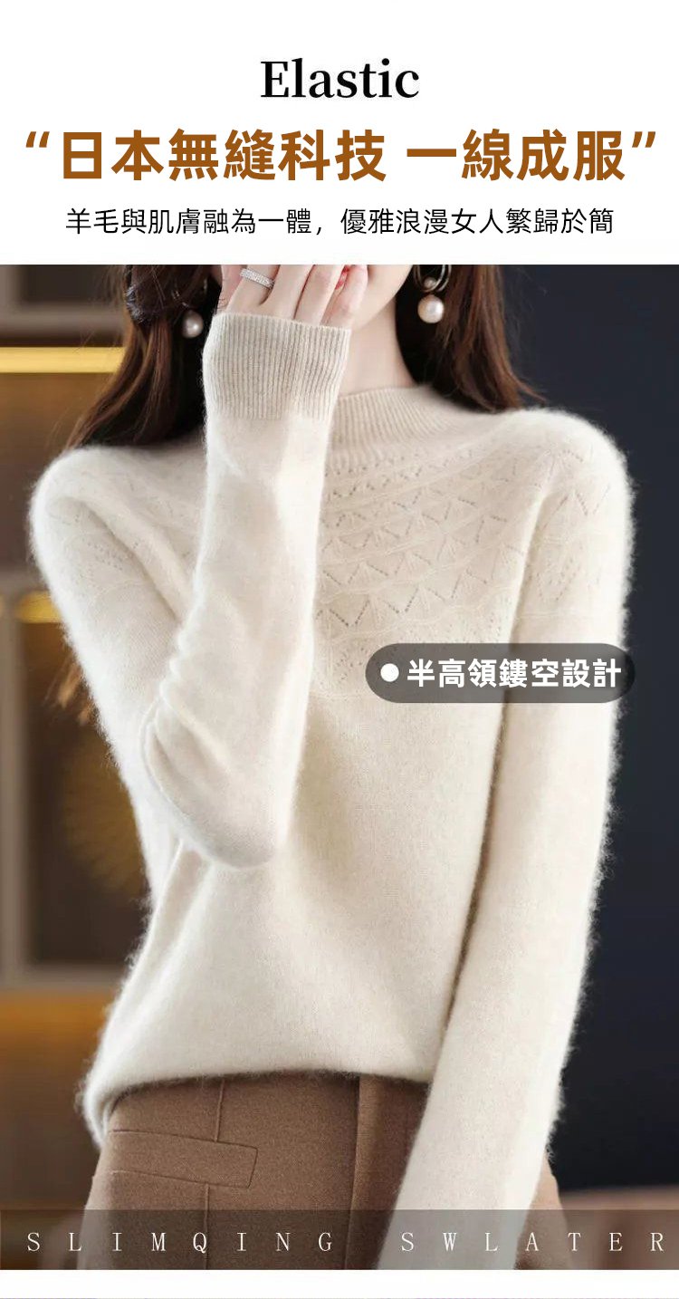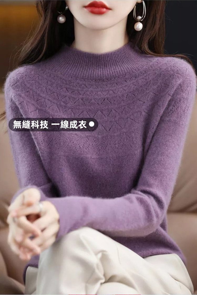 【一線成衣】無縫羊絨半高領針織毛衣